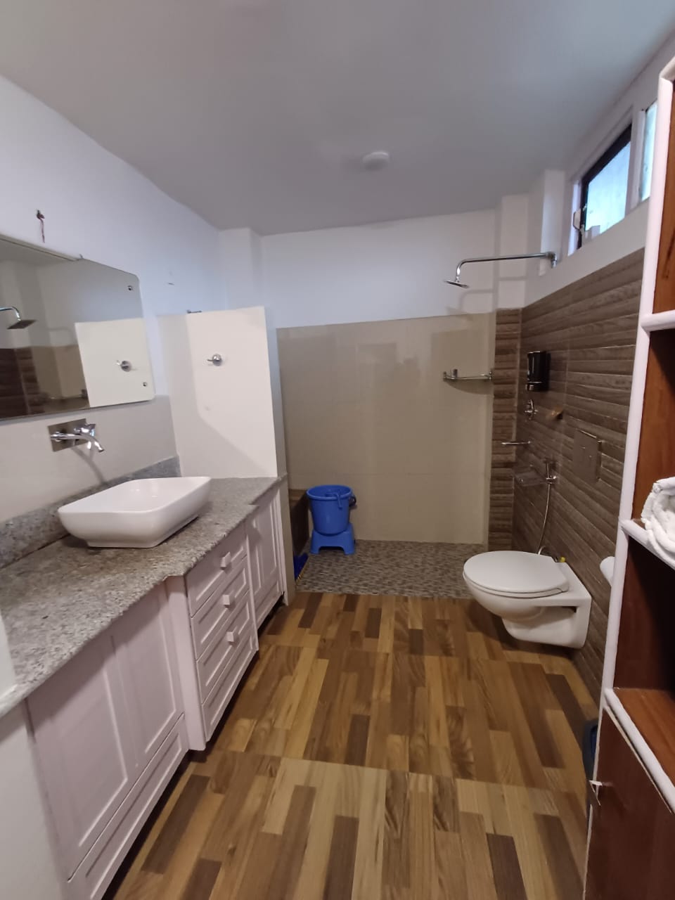 Maanasbal is in the middle of the 3 rooms facing the garden. It is a cozy deluxe, double bed room on the ground floor located on the north wing of the property. This room enjoys a private verandah over looking the garden. Maanasbal is a large room with the dimensions of 14.5 by 12 feet , with a dressing area of 7 by 4 feet next to the bathroom (8 by 9 feet).